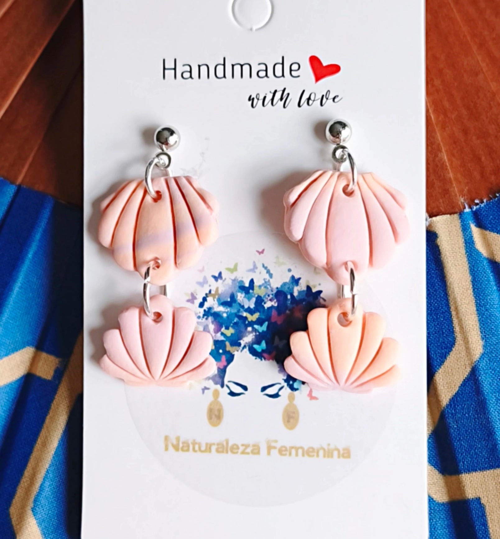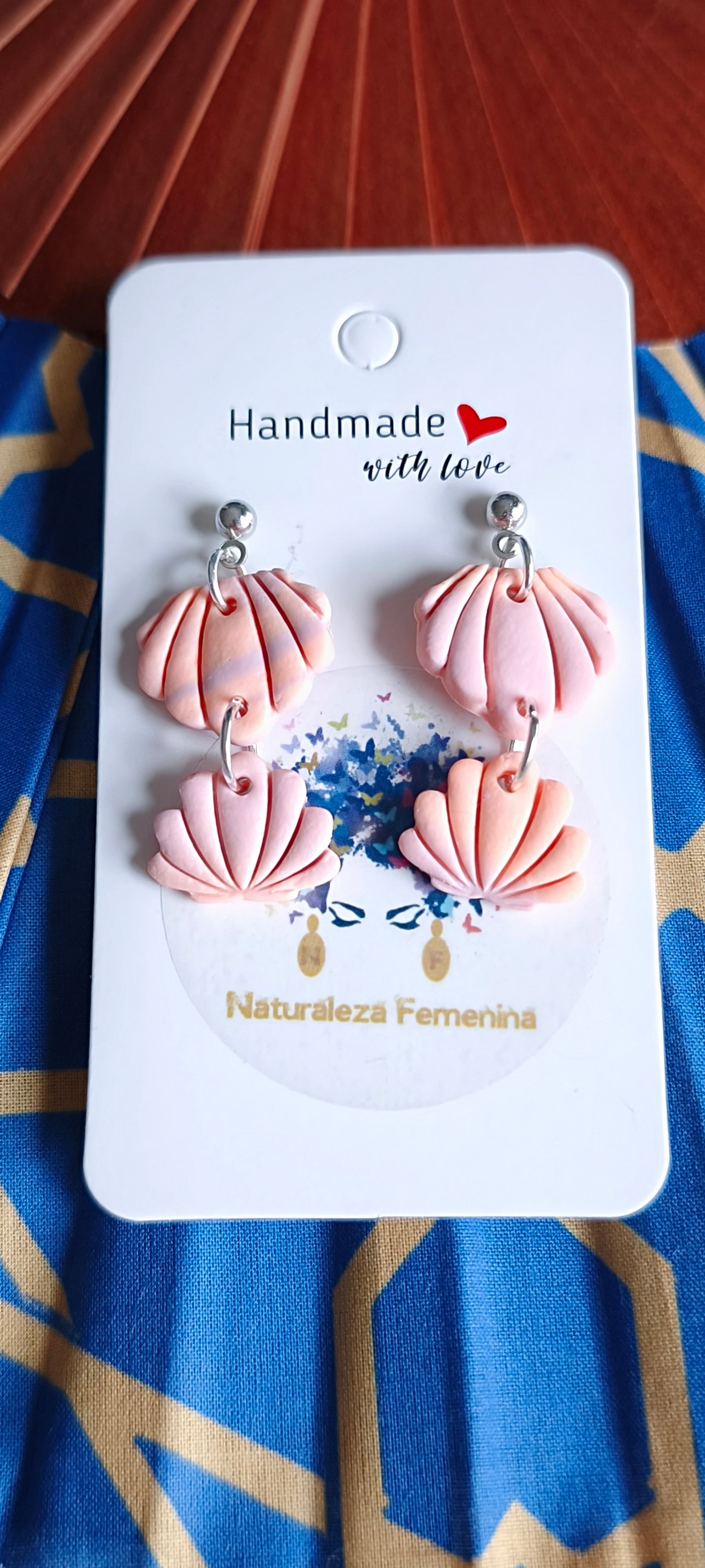 Pendientes Modelo Concha Doble de la Colección arina. Hechos de arcilla con detalles en Naranjas. Cierre en bolita a presión con trasera en acero y plástico. ✨ Son hipoalergénicos, perfectos para pieles sensibles.
